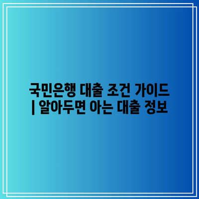 국민은행 대출 조건 가이드 | 알아두면 아는 대출 정보
