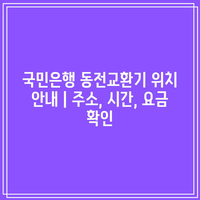 다음 글을 읽고 가장 가까운 국민은행 동전교환기 위치를 확인하고, 운영 시간을 알아보세요. 또한 동전 교환에 대한 요금 공지도 제공하겠습니다.