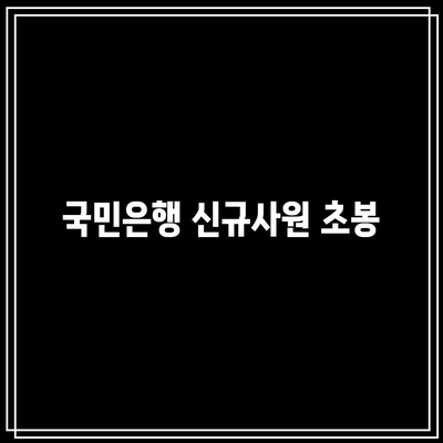 ✅ 국민은행 신규사원 초봉을 뛰어넘은 놀라운 급여 범위