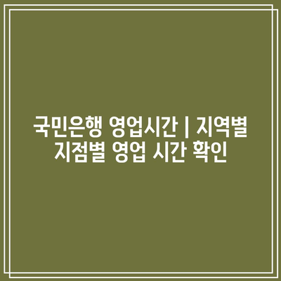 금융 업무로 국민은행 지점을 방문하실 계획이신가요? 시간 낭비를 피하고 원활한 거래를 위해서는 영업 시간을 미리 파악하는 것이 중요합니다.