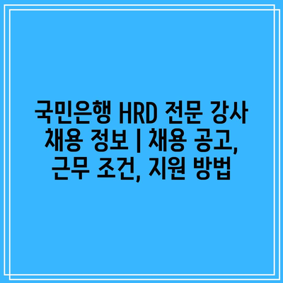 ✅ 국민은행 HRD 전문 강사 채용 공고를 지금 확인하세요.