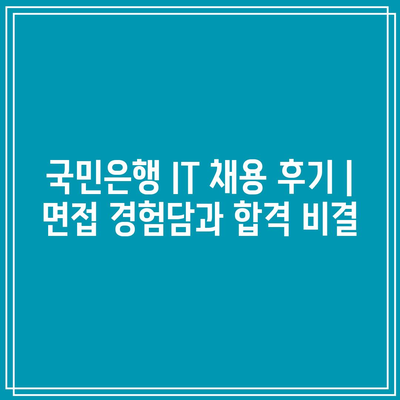 ✅ 국민은행 IT 채용 후기에 대해 자세히 알아보고 싶으세요? 바로 확인하세요!