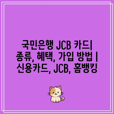 국민은행 JCB 카드에 대해 알아보세요! 신용카드, JCB, 홈뱅킹을 활용하여 혜택을 누릴 수 있는 다양한 종류와 혜택을 소개하겠습니다.