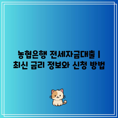 농협은행 전세자금대출 | 최신 금리 정보와 신청 방법