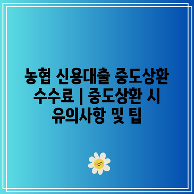✅ 농협 신용대출 중도상환은 손해인가? 수수료 절약 팁 알아보기