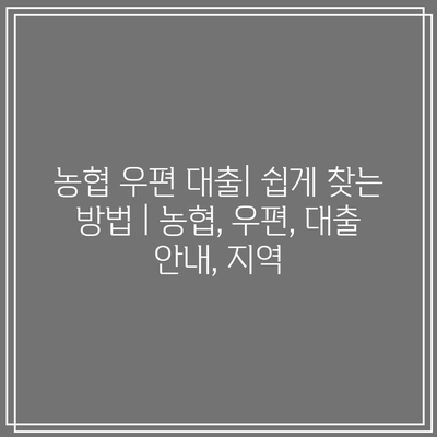 ✅ 농협 우편 대출 방법을 한 눈에 파악하세요!