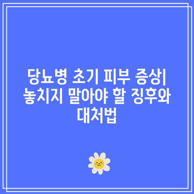 당뇨병 초기 피부 증상은 종종 미묘하여 쉽게 놓칠 수 있습니다. 주의해야 할 증상으로는 피부 건조, 발적, 가려움증이 있습니다. 또한 피부에 쉽게 멍이 생기거나 작은 상처가 오랫동안 치유되지 않는 경우도 당뇨병의 징후일 수 있습니다.