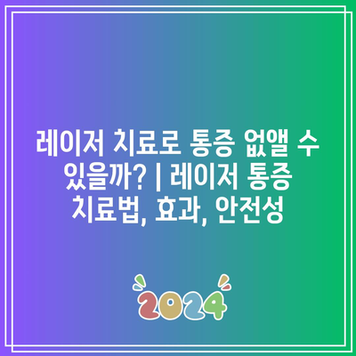 레이저 치료로 통증 없앨 수 있을까? | 레이저 통증 치료법, 효과, 안전성