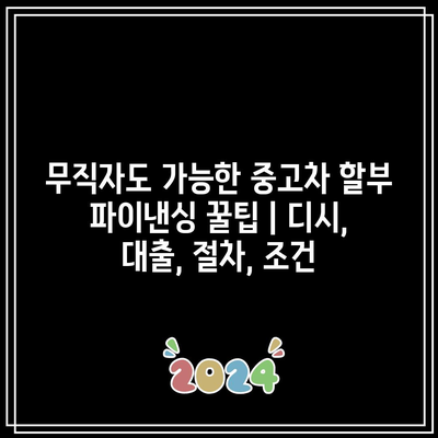 무직자도 중고차 파이낸싱을 통해 자신의 꿈의 차를 소유할 수 있습니다. 신용 점수와 수입 증명을 개선하고, 적합한 파이낸싱 조건을 선택하는 것이 중요합니다.