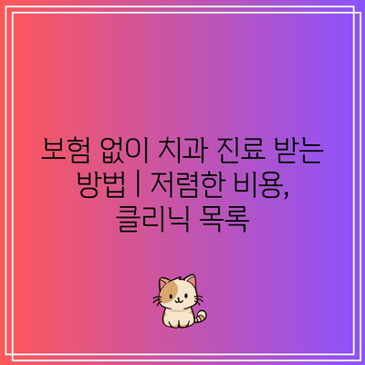 질문. 보험 없이 치과 진료를 받을 수 있는 저렴한 클리닉을 어떻게 찾을 수 있습니까?