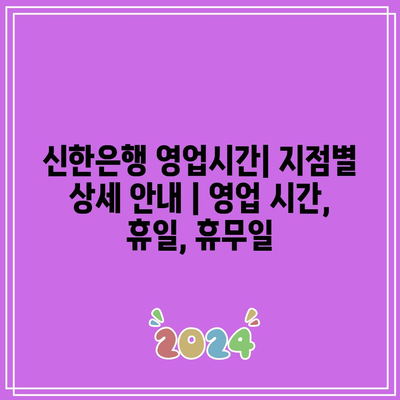 전국 신한은행 영업시간과 휴무일을 지금 바로 확인하세요!