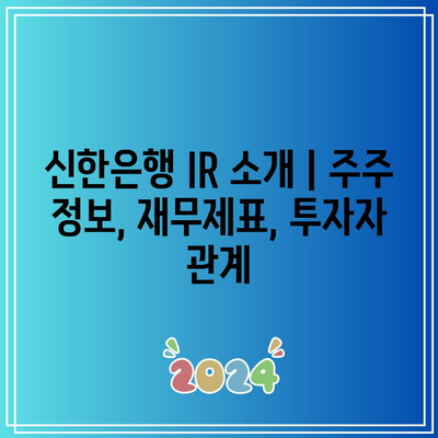 신한은행 IR 소개 | 주주 정보, 재무제표, 투자자 관계 에 대해 자주 묻는 질문 TOP 5