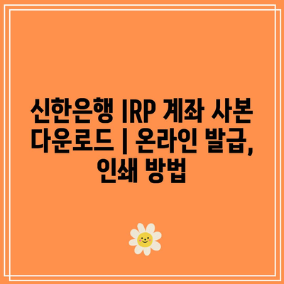 신한은행 IRP 계좌 사본이 필요하신가요? 이 블로그에서 온라인 발급 및 인쇄 방법을 공지해 알려드리겠습니다. 이 간단한 공지서는 귀하가 필요한 문서를 편리하고 효율적으로 확보하는 데 도움이 될 것입니다.