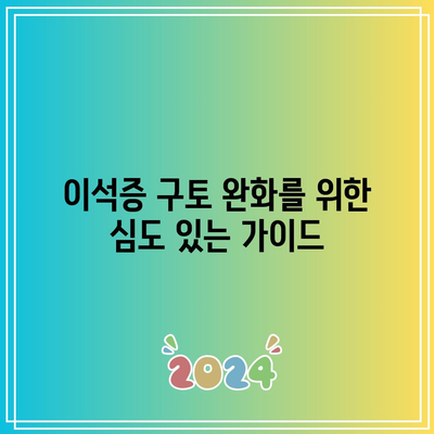 이 가이드를 따르면 이석증으로 인한 구토를 효과적으로 완화하는 데 도움이 될 수 있습니다. 구토가 완화되지 않거나 다른 증상이 나타나면 의료 전문가를 만나 진단과 적절한 치료를 받으시기 바랍니다.