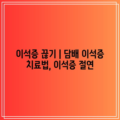 담배 이석증 절연| 필수 팁과 대책