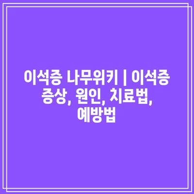 질문. 이석증 나무위키 | 이석증 증상, 원인, 치료법, 예방법에 대한 가장 흔한 질문은 무엇인가요?