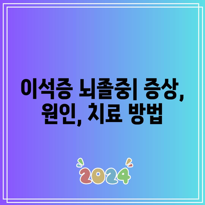 답변. 이석증 뇌졸중은 치료가 가능하지만, 시간이 중요합니다. 증상이 나타나면 즉시 긴급 의료 지원을 받는 것이 필수적입니다.