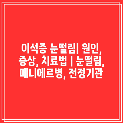 이석증 눈떨림 | 원인, 증상, 치료법 | 눈떨림, 메니에르병, 전정기관