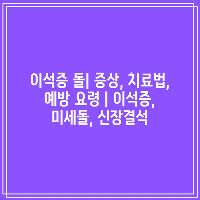 이석증은 흔한 요로 상태입니다. 규칙적인 수분 섭취, 적절한 식이, 의료적 개입과 같은 예방 조치를 통해 위험을 줄일 수 있습니다.