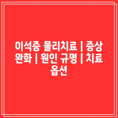이석증 물리치료 | 증상 완화 | 원인 규명 | 치료 옵션