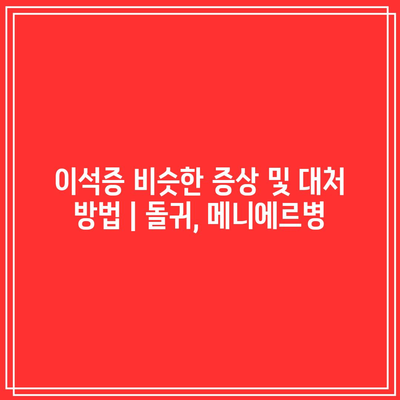 돌귀는 이석증과 유사한 증상을 유발하지만 원인이 다릅니다. 돌귀는 내이의 달팽이관에 액체가 차는 것으로 인해 갑작스럽고 심한 어지러움, 청력 손실, 귀울림을 유발합니다.