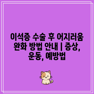 질문. 이석증 수술 후 어지러움을 예방하는 방법이 있나요?