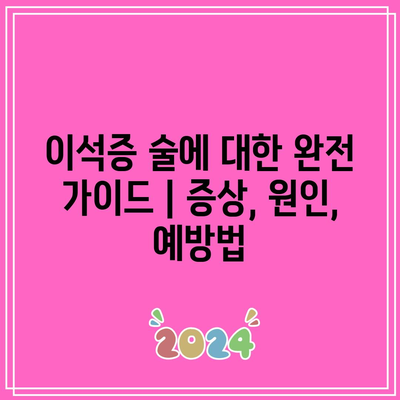 ✅ 이석증 술을 마시게 될 때의 증상과 원인을 자세히 알아보세요.