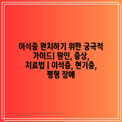 이석증은 내이에 이석이 쌓여 발생하는 평형 장애입니다. 이 글에서는 이석증의 원인, 증상, 치료법에 대해 자세히 알아보고 완치를 위한 궁극적 가이드를 제공합니다.