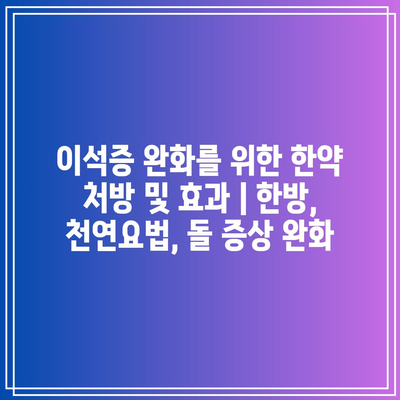 근대의학 연구에서 한약재가 이석증 완화에 효과적인 것으로 나타났다. 예를 들어, 자웅진통환은 신장결석 환자의 통증을 완화시켰고, 산호생당환은 요로결석 환자의 결석 크기를 감소시켰다.