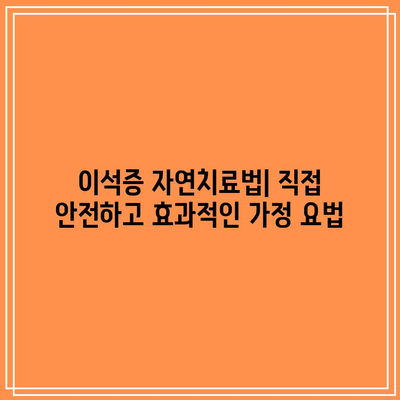 이석증 자연치료법은 병원을 방문하지 않고 집에서 다룰 수 있는 안전하고 효과적인 방법이다. 적절한 기법과 주의 사항을 따르면 증상을 완화하고 재발을 예방하는 데 큰 도움이 될 수 있다.