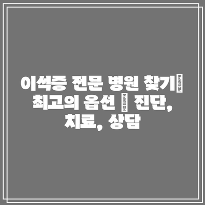 ✅ 이해석증 고민 쉽게 해결! 전문 병원 찾기 바로가기