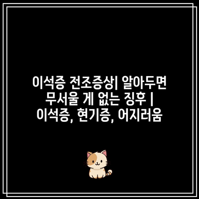 ✅ 이석증 전조 증상 혹시 이거 맞는지 확인해 보세요!