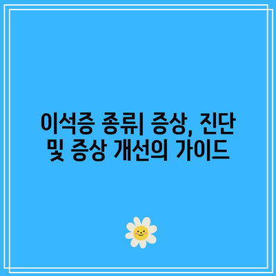 이석증 종류| 증상, 진단 및 증상 개선의 가이드