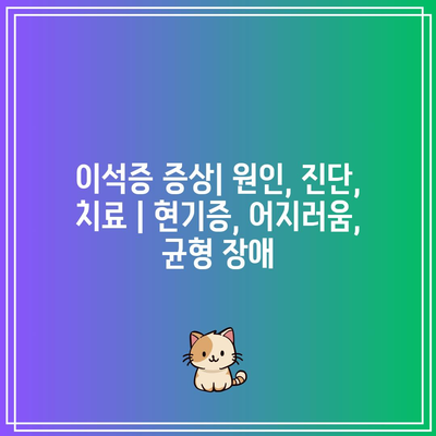 중요 참고 사항: 이석증의 증상은 다른 의학적 상태를 나타낼 수도 있으므로, 정확한 진단과 치료를 위해 의료 전문가의 진찰을 받는 것이 중요합니다. 또한, 이석증은 대부분의 경우 경미하고 일시적이지만 증상이 지속되거나 악화되는 경우에는 추가 진료를 고려하는 것이 필수적입니다.