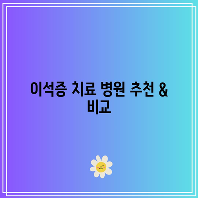 이석증으로 고생하고 계신가요? 효과적인 이석증 치료 병원을 찾는 데 도움을 드리고자 병원을 추천하고 비교해 보겠습니다.