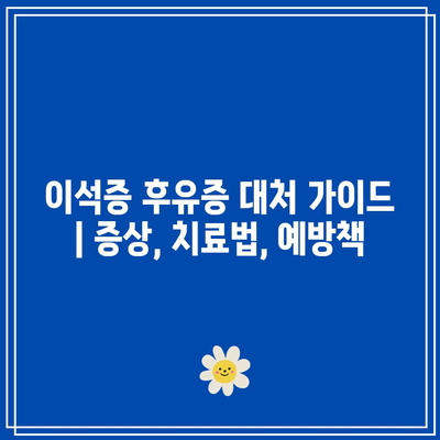 이 글에서는 이석증 후유증의 증상, 치료법, 예방책을 안내하여 불편함을 줄이고 생활의 질을 향상시킬 수 있도록 도와줍니다.