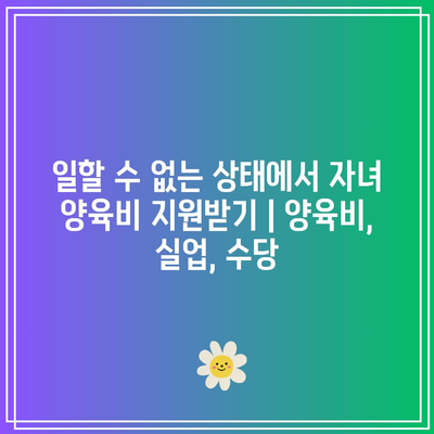 일할 수 없는 상태에서 자녀 양육비를 지원받는 방법을 알고 싶나요? 실업이나 장애로 인해 일에 임할 수 없을 때, 자녀 양육의 비용을 충당할 방법이 있습니다.