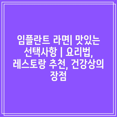 임플란트 라면: 맛있는 선택과 그 이상