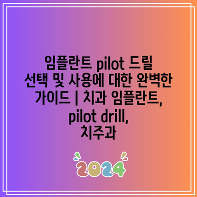 ✅ 지금 확인하세요! 치과 임플란트 성공률을 좌우하는 pilot 드릴의 모든 것