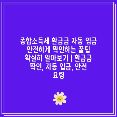 종합소득세 환급금 자동 입금 안전하게 확인하는 꿀팁 확실히 알아보기 | 환급금 확인, 자동 입금, 안전 요령 에 대해 자주 묻는 질문 TOP 5