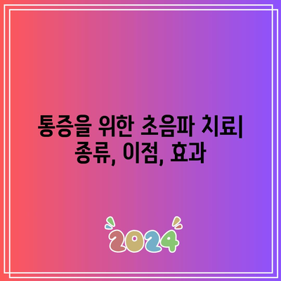 - 초음파 치료는 염좌, 긴장, 근육통, 관절통 등의 근골격계 통증을 완화하는 데 효과적입니다.