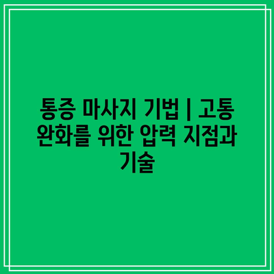 질문. 통증 마사지 기법은 어떤 유형의 통증에 효과적인가요?