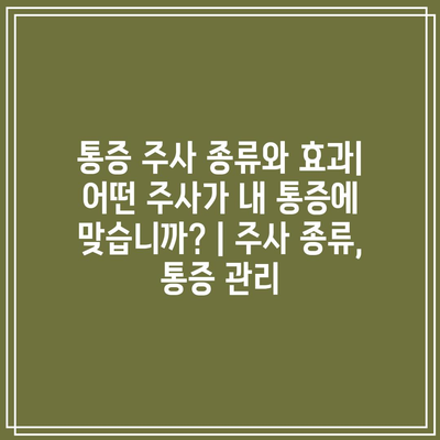 ✅ 통증 주사와 관련된 효과적인 약물 정보를 확인하세요.