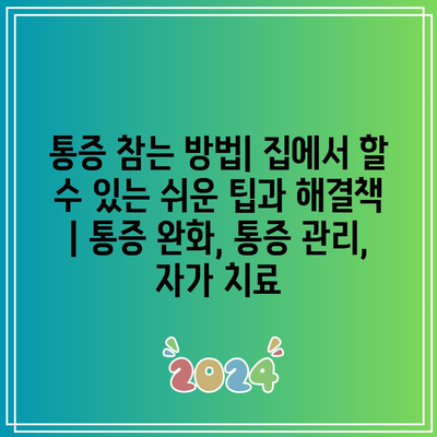 통증 참는 방법| 집에서 할 수 있는 쉬운 팁과 해결책 | 통증 완화, 통증 관리, 자가 치료