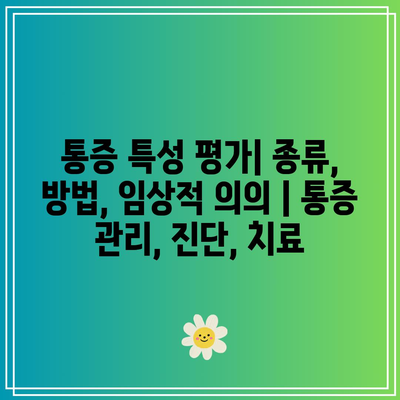 통증 특성 평가| 종류, 방법, 임상적 의의 | 통증 관리, 진단, 치료