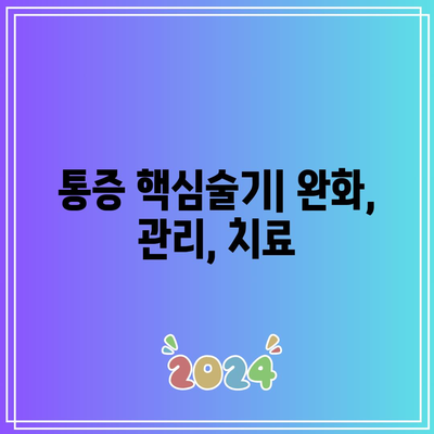 ✅ 통증을 완화하는 효과적인 약 알아보기