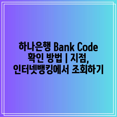 하나은행 계좌 Bank Code는 지점 코드 조회나 인터넷뱅킹 이용에 필수 정보입니다. 이 페이지에서는 Bank Code 확인 방법을 손쉽게 알려제공합니다. 간편한 팁과 안전한 확인 절차를 알아보세요.