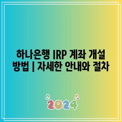 하나은행 IRP 계좌 개설은 인터넷 뱅킹 또는 방문 기관에서 간편하게 진행할 수 있습니다. 다음과 같은 단계를 따르세요.