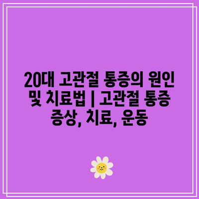 답변. 20대에서 고관절 통증이 발생하는 가장 일반적인 원인은 과사용, 손상, 근육 긴장입니다. 또한 치골대퇴 관절 무혈관성 괴사(AVN)와 같이 기저 질환이 원인인 경우도 있습니다.