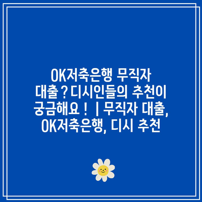 ✅ OK저축은행에서 무직자도 대출받을 수 있나요? 디시인들의 후기를 확인하세요.